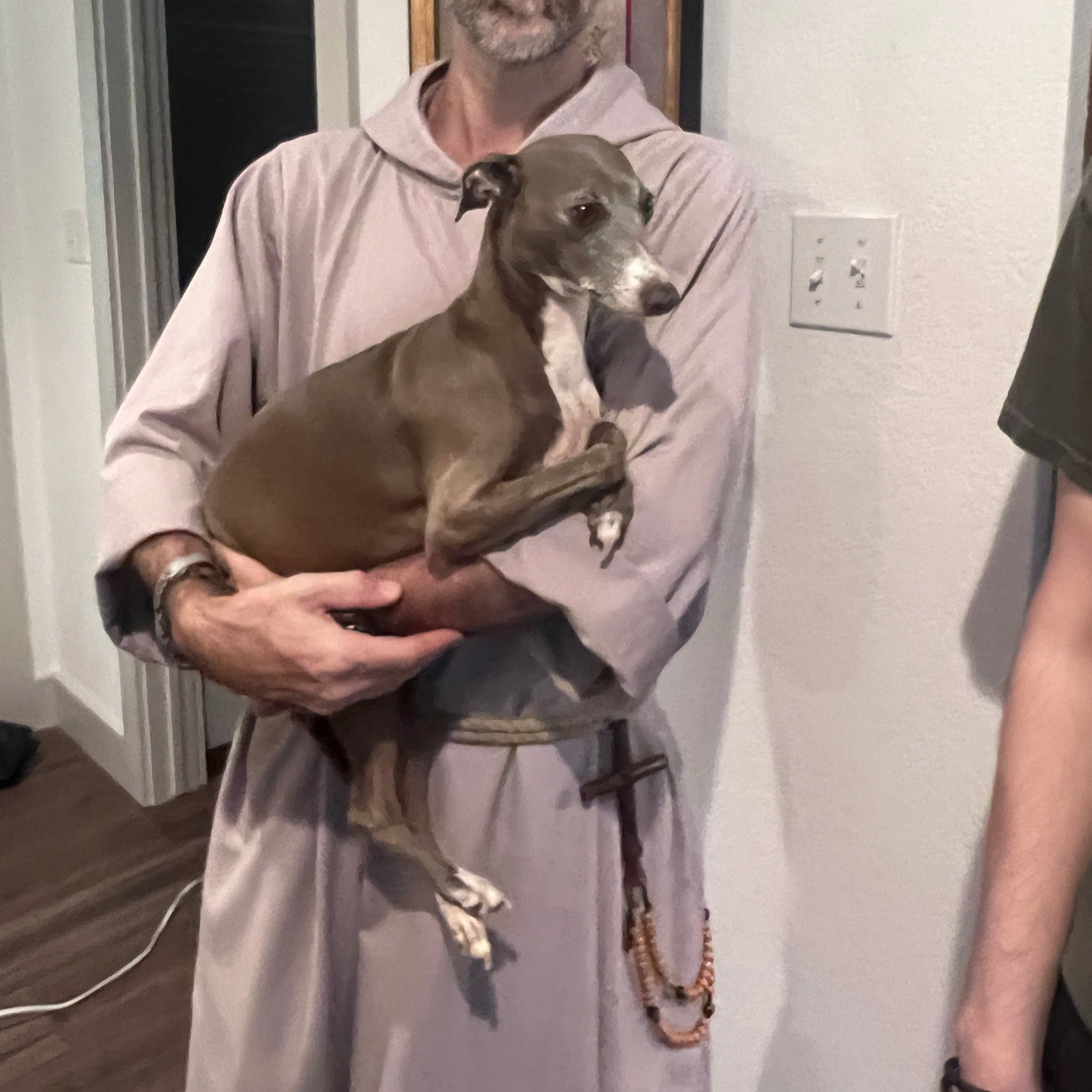 St. Francis of Assisi, depicted as a humble gray friar with his faithful animal companions.
