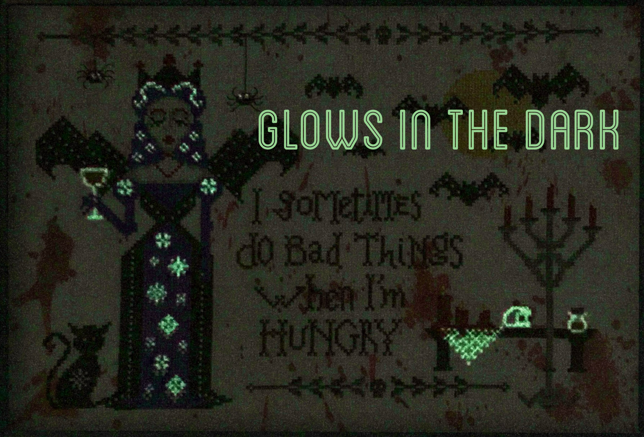Step into the dark and deliciously wicked world of Dirty Annie’s Southern Style with Bad Things, a spooky Halloween cross stitch design that’s as fun to stitch as it is to display! Featuring a glamorous vampire queen, black cat, creepy bats, blood-red candles, and the playful quote "I sometimes do bad things when I’m hungry", this piece is a hauntingly perfect addition to your gothic décor.