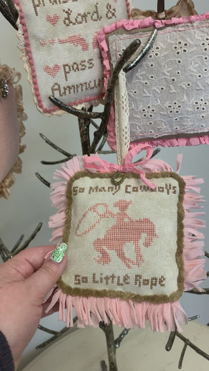 So Many Cowboys...So Little Rope! Rustic Horseshoe charm is included with the chart!