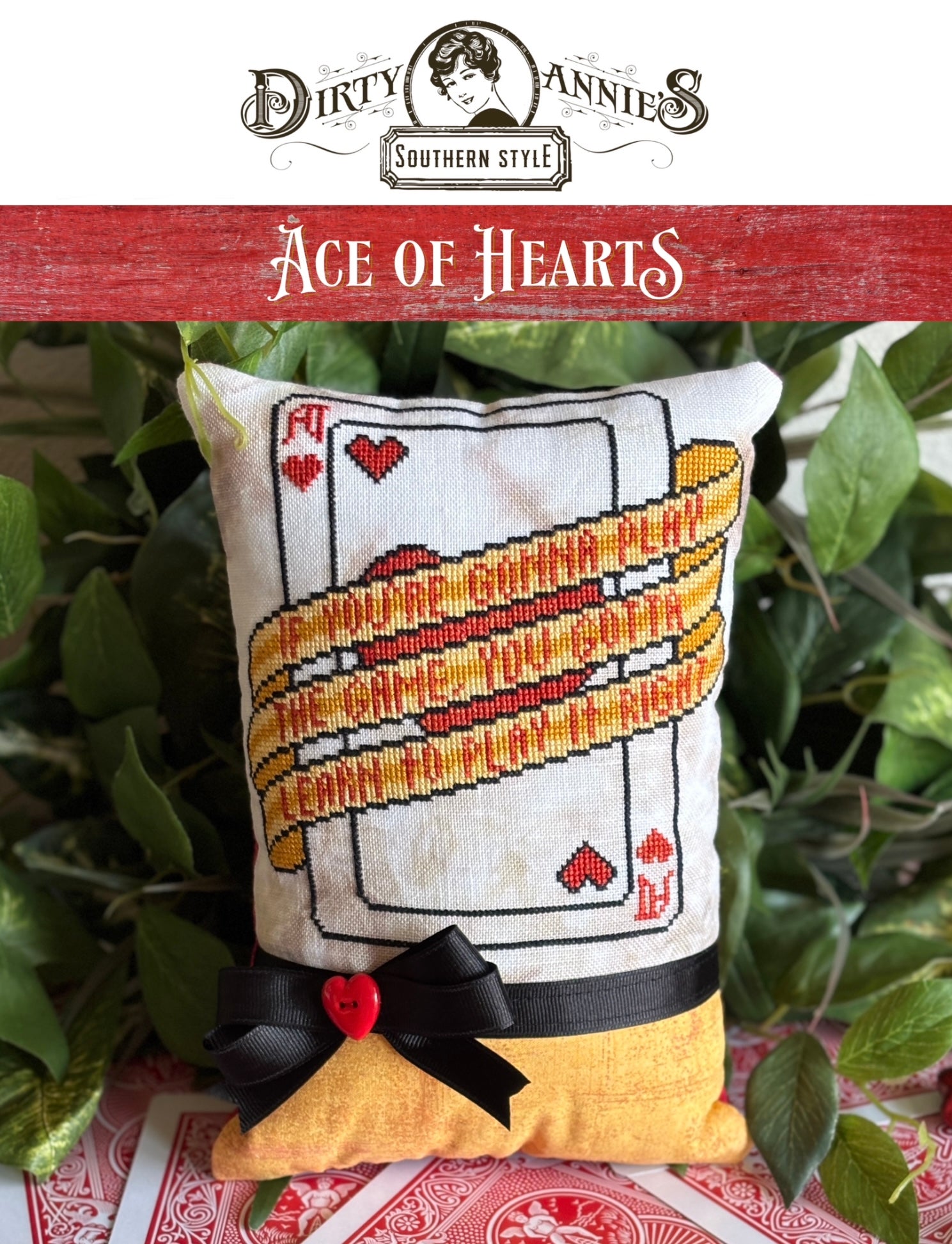 Ace of Hearts Cross Stitch Pattern | Kenny-Inspired Quote | Poker Life Series | 98x97 Chart | Silk & DMC Options | Dirty Annie